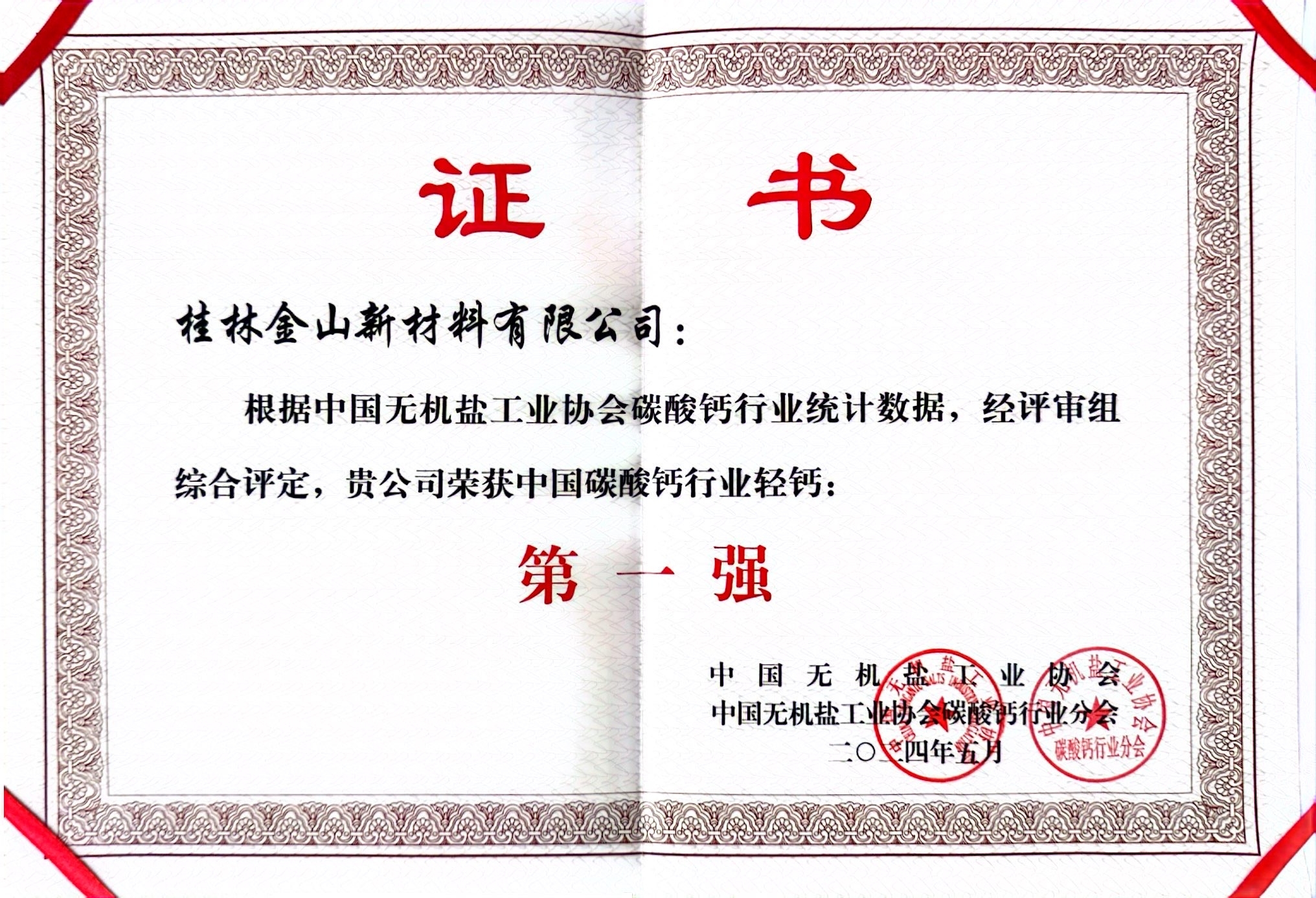 “中國碳酸鈣行業(yè)輕鈣第一強”